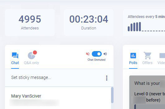 5,000+ live attendees per week sustained for months
